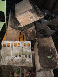 We beginnen deze verbouwing dus met de oude nestkasten te verwijderen;